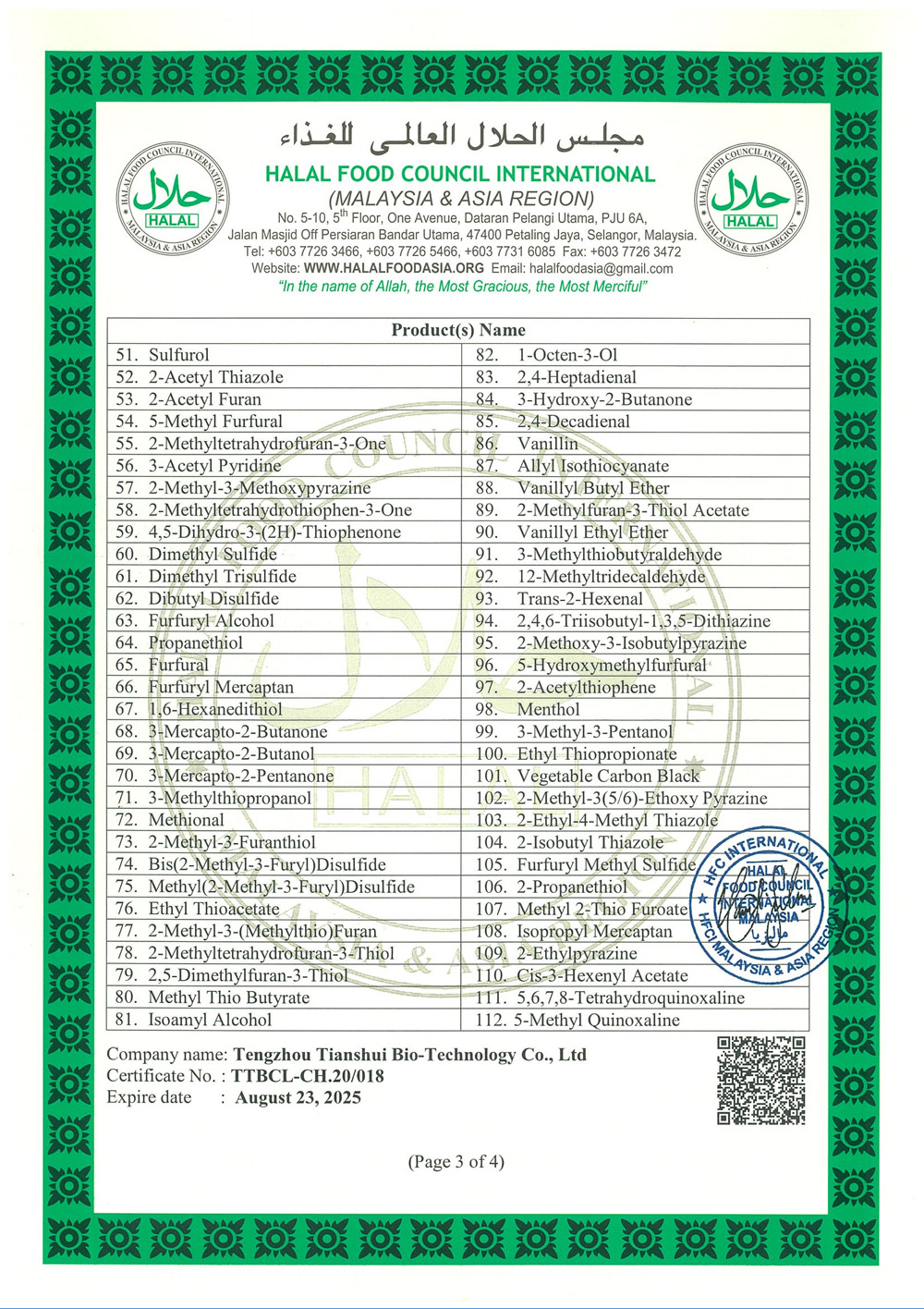 滕州市天水生物科技有限公司成立于2011年9月,是目前國內(nèi)雜環(huán)類合成食品香料、日化香料和醫(yī)藥中間體生產(chǎn)經(jīng)營的綜合性企業(yè)。坐落于山東省滕州市生物醫(yī)藥產(chǎn)業(yè)基地,總投資5000余萬元,占地面積約30000平方米,員工百余人。公司先后被評為高新技術(shù)企業(yè)、專精特新中小企業(yè)、科技型中小企業(yè),建有市級重點實驗室1處,并先后獲得ISO9001質(zhì)量體系認證、ISO22000食品安全體系認證、kosher認證和Halal認證。是香精香料及食品配料協(xié)會會員單位及滕州市中小企業(yè)協(xié)會理事單位。